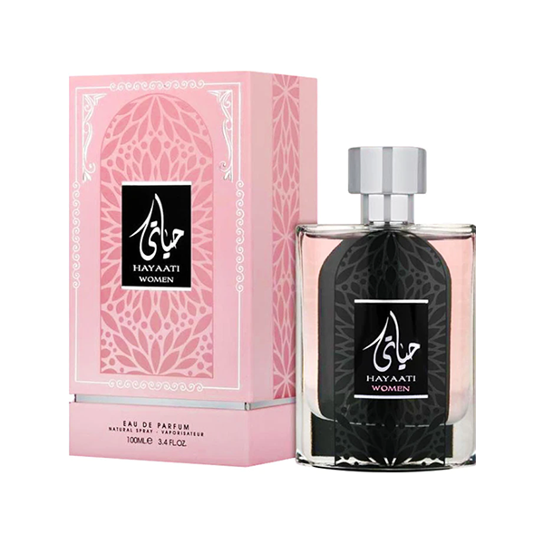 Hayaati Women by Ard Al Zaafaran е флорално плодово ухание за жени и мъже. Hayaati Women е лансиран през 2021 година. Връхни нотки са зелен бадем и жасмин; сърдечни нотки са пралин, гардения и женско биле; базови нотки са кайсия, праскова, ванилия и сандалово дърво.