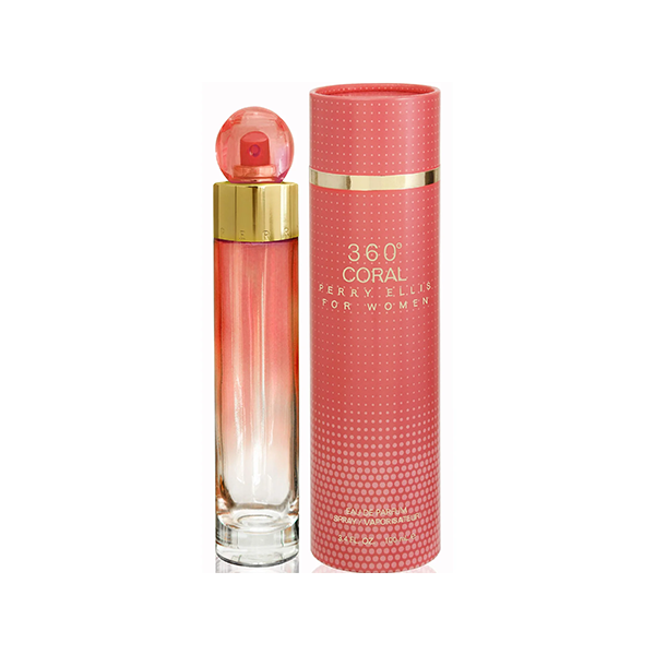 360° Coral от Perry Ellis е ориенталски флорален аромат за жени. 360° Coral е лансиран през 2014 г. Връхните нотки са круша, праскова, ябълка, бергамот и розов пипер; средните нотки са жасмин, божур и момина сълза; базовите нотки са тонка боб, мускус, кашмирено дърво и амбра.