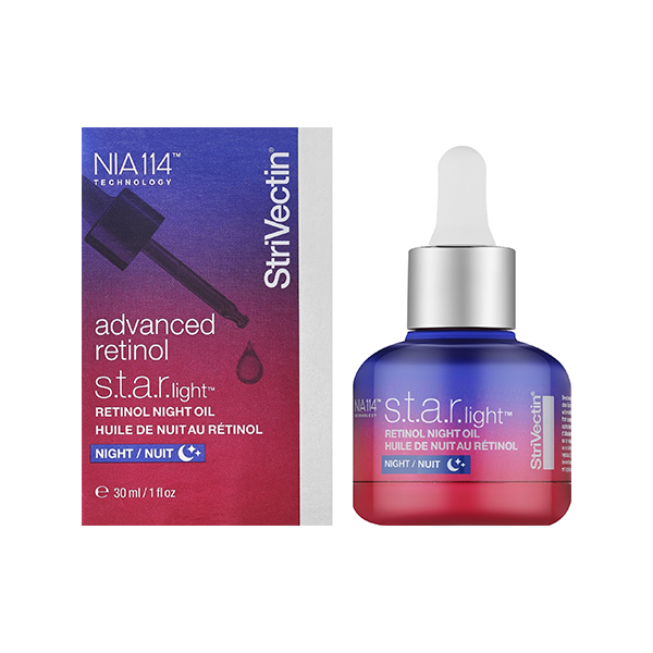 Strivectin Advanced Retinol S.T.A.R. Light Retinol Night Oil е иновативно нощно масло за лице с ретинол, подходящо за унисекс употреба. Формулата му е проектирана да подобрява текстурата на кожата, да намалява видимостта на фините линии и бръчките, както и да осигурява интензивна хидратация. Леката текстура на маслото позволява бързо абсорбиране, без да оставя мазен филм. Богатството на антиоксиданти в състава спомага за защита от оксидативен стрес и премахване на признаците на умора. Съчетавайки мощността на ретинола с успокояващи съставки, продуктът оставя кожата гладка и сияйна на сутринта. Насладете се на ефективно решение за вашата нощна рутина с Strivectin!