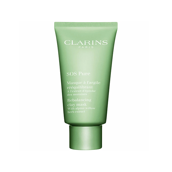 Clarins SOS Pure Rebalancing Clay Mask е почистваща маска, която матира и съживява мазната или комбинирана кожа. Има крем-гел текстура, която помага за освежаване и тонизиране на кожата, с видими резултати само за десет минути. Формулата включва смес от глини, както и други ботанически съставки за постигане на невероятни резултати. Бялата и зелена глина помагат за абсорбиране на замърсяванията, като същевременно изглаждат кожата и насърчават блясъка отвътре. Освен това билката алпийска върба помага за минимизиране на лъщенето и матира кожата. Също толкова важно е, че формулата изключва алкохола от списъка със съставки и има ексклузивен комплекс против замърсяване на Clarins, който предпазва кожата от замърсяване.