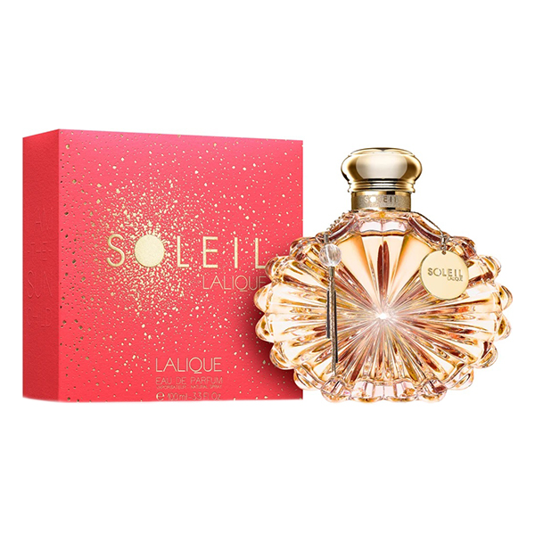 Soleil от Lalique е флорално плодов гурмански аромат за жени. Soleil стартира през 2019 г. Soleil е създаден от Александра Моне. Връхните нотки са мандарина, горчив бадем и кардамон; средните нотки са круша, мляко, захаросани бадеми, карамел, кафе и жасмин; базовите нотки са пралина, бял мускус и сандалово дърво.
